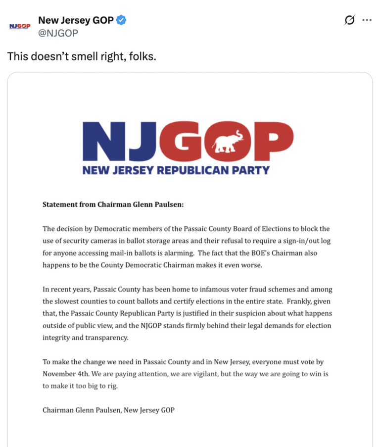 The GOP is now weighing legal action to force the county to adopt the security steps — setting up what could become yet another battle in New Jersey’s ongoing war over election integrity.